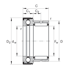 滾針/推力球軸承 NKX10-Z-TV, 根據(jù) DIN 5429 標(biāo)準(zhǔn)的推力軸承組件,單向,有端蓋,脂潤(rùn)滑