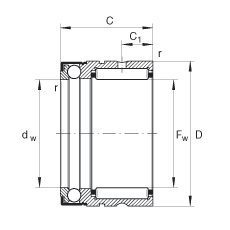 滾針/推力球軸承 NX7-Z-TV, 單向推力軸承組件,脂潤滑